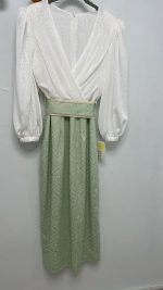 Un vestido que estiliza, favorece y te hace sentir especial. Su escote cruzado y las mangas abullonadas aportan un aire elegante y actual, mientras que el largo midi y el tejido con relieve lo convierten en una apuesta segura para tus eventos más importantes.
